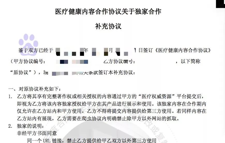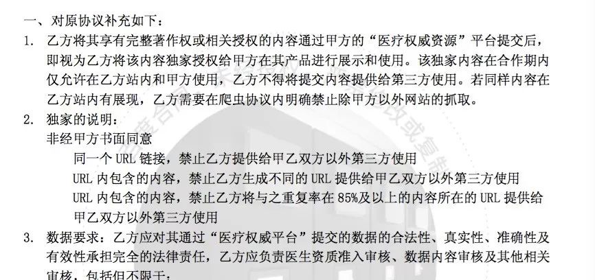 同时,百度方还表示,自去年下半年,百度发现友商在盗用百度与资源方合作共建的数据,为保护百度及资源方利益,保障医疗垂类权威数据生产的可持续发展,在与资源方沟通后,百度将与资源方的合作升级为独家合作,并签署独家合作协议。