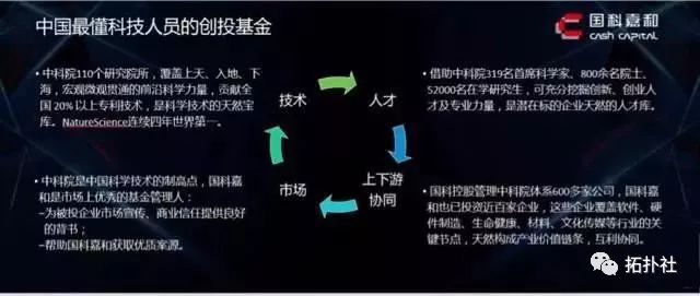 中国科学院是国家的战略科学力量,我们贡献了国家20%的专利权,100多个是研究院所,5万的博士,450个院士。国科嘉和基金是中科院的一级投资平台,直接投资创业项目,目前管理资金在740亿。我们从1千万起投,投到单个案子大概5个亿左右。