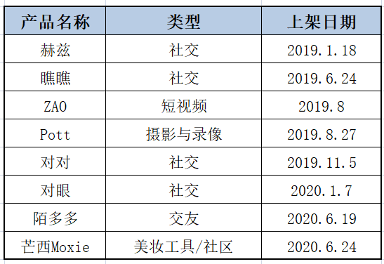 据观察,从2019年开始,陌陌陆续上线了8款新App,主要以社交和相机工具为主。