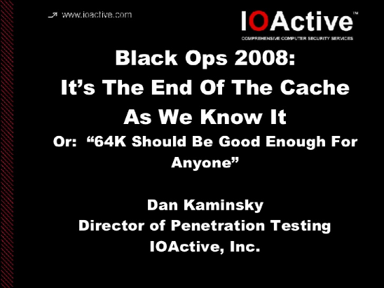 在2008年黑帽大会上,29岁的卡明斯基给出了这一重大安全漏洞最直白的威胁。