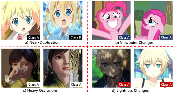 在iCartoonFace卡通识别数据集中,有四类代表性的挑战,如图3所示: