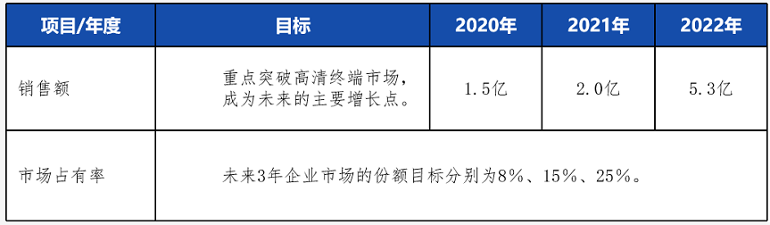 到 2022 年,在战略重点市场的产品的竞争力达到国内领先水平,行业内的销售额做到第一,成为国内企业第一品牌。
