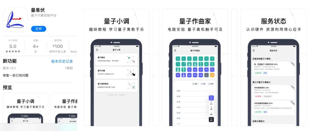 其中,量易伏在百度智能云的加持下成为全球首个云原生量子平台,实现了超导量子计算机、离子阱量子计算机等多后端算力接入,并提供自有硬件和第三方硬件接入的能力。同时,移动端和电脑端等多前端使用模式更使得量子算力触手可及。目前,移动端量易伏 APP 在各大应用商城均已上线。
