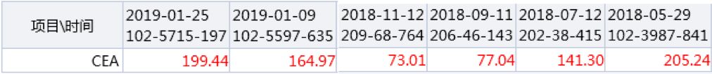 ① 右肺中叶肺癌,与2019-1-9CT相比,无明显变化。