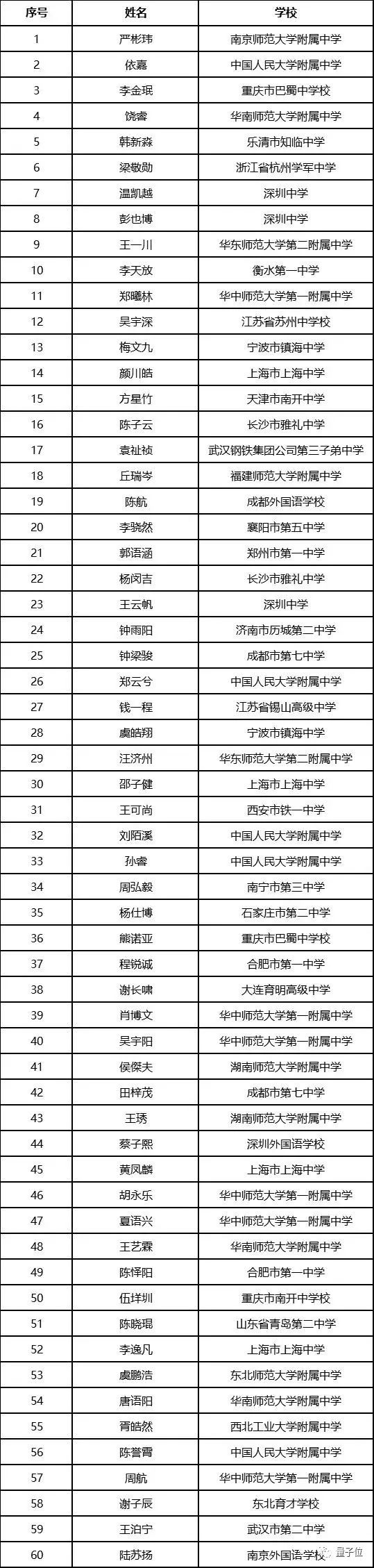 其中排名第一的是南京师范大学附属中学的女生严彬玮。
