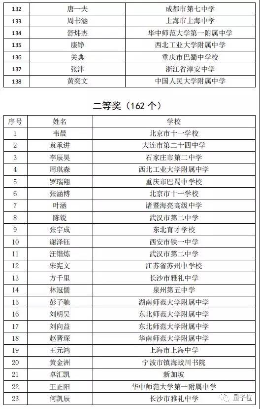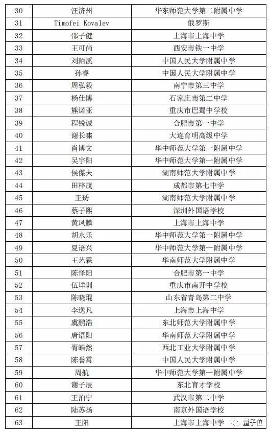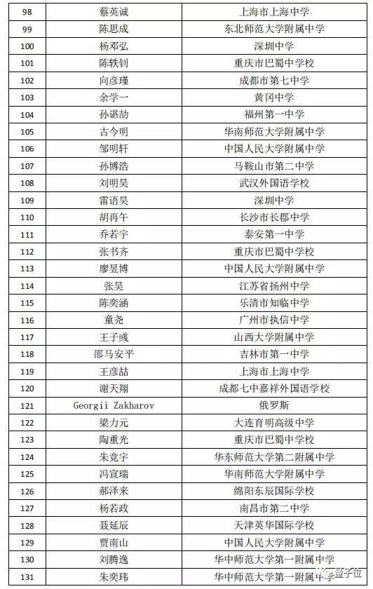 最后附第35届中国奥数竞赛金牌获奖者名单: