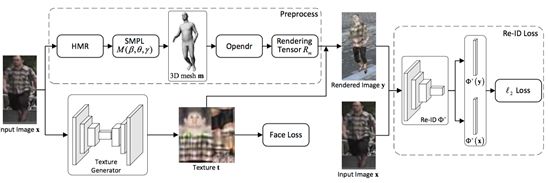 本文提出一种端到端学习策略,可在行人重识别的监督下生成人体纹理。
