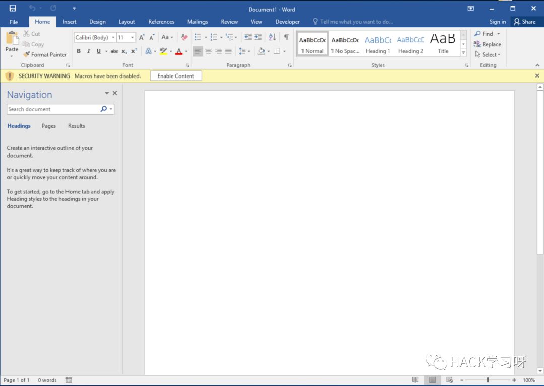 虽然有一个新的弹出窗口,但它不会影响Payload。这只是因为.docx文件不包含宏。如果用户单击“启用内容”或将宏设置为自动运行,那么我们将拿到肉鸡: