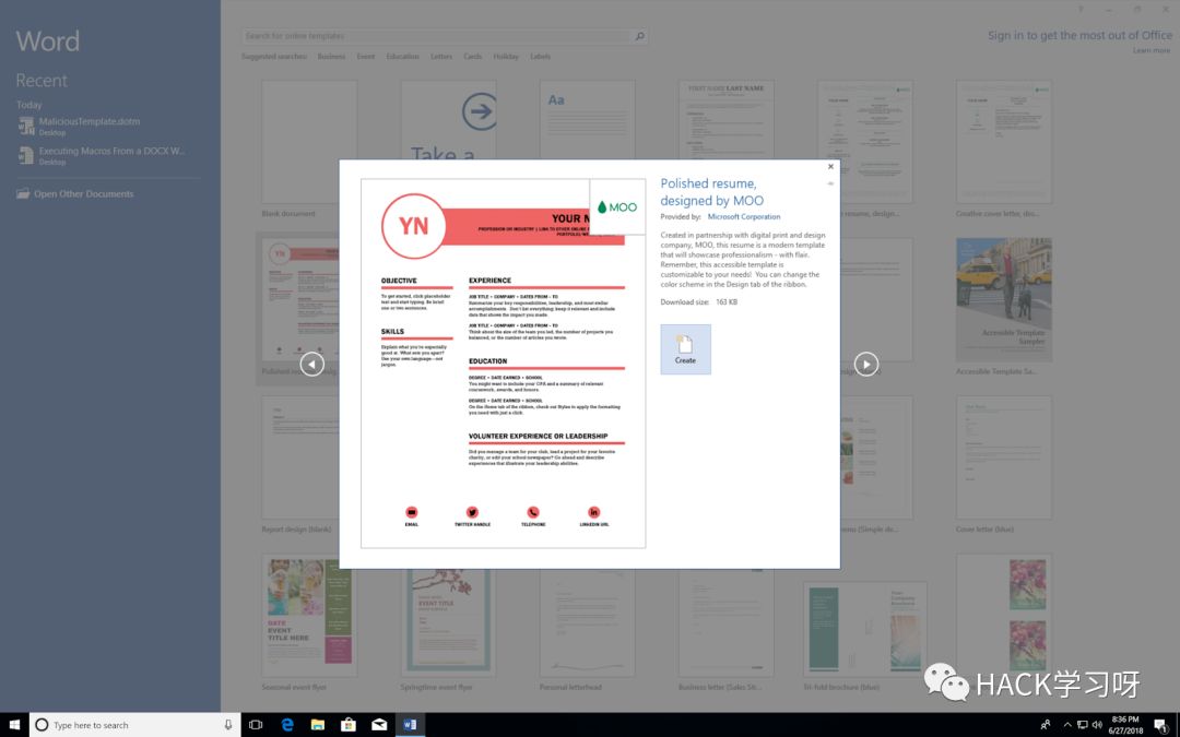 在这篇文章中,我想谈谈并展示下不久前向我看到的代码执行的方法。此方法允许用户创建一个将被加载的DOCX文档,并使用远程DOTM模板文件去执行宏。