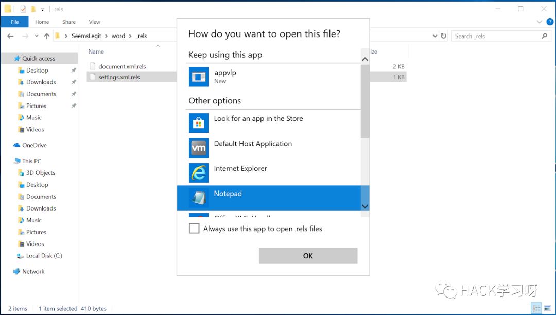 与传统的宏启用文档相比,这种攻击的好处是多方面的。在对目标执行网络钓鱼攻击时,您可以将.docx的文档直接附加到电子邮件中,并且您不太可能根据文件的拓展名去阻止它。许多组织机构阻止以.doc或.docm为拓展名的文档却允许.docx文档,是因为它们不会包含宏。