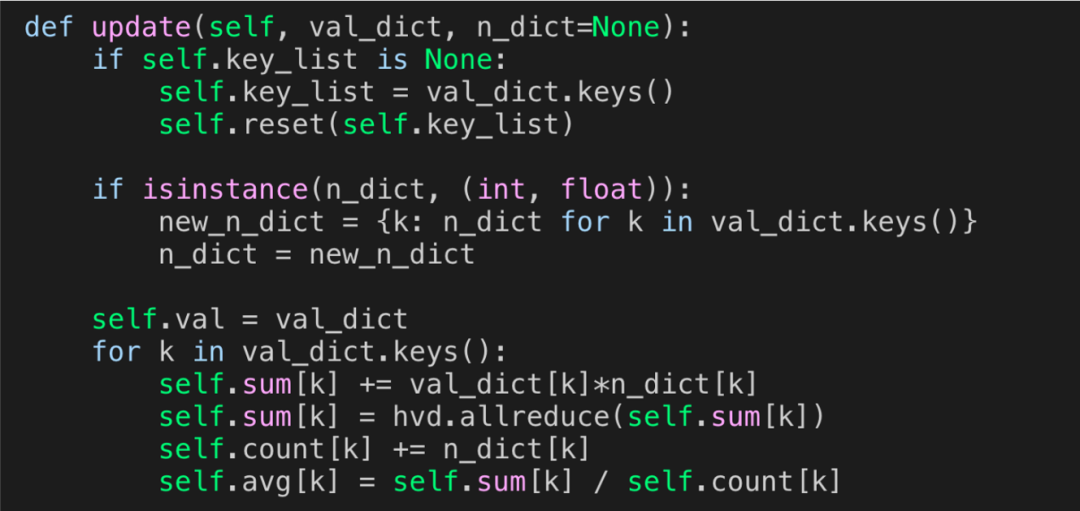 在训练过程中,计算损失函数时需要涉及到allreduce操作,将所有worker的损失规约,然后再进行梯度传播。