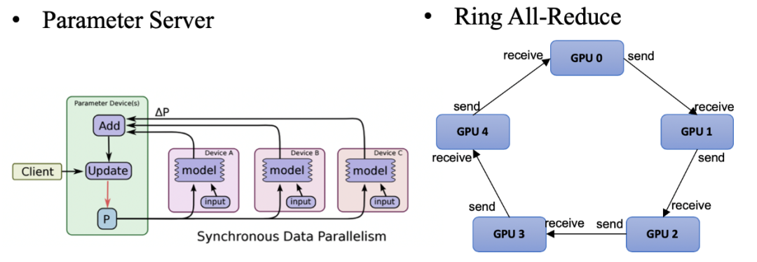 分布式训练系统架构主要包括两种:一种是Parameter Server Architecture(就是常见的PS架构,参数服务器)和Ring all-reduce Architecture。
