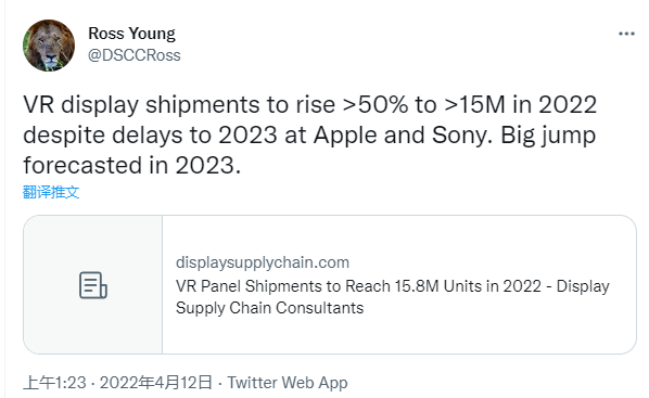 从今年年初开始,索尼逐渐发布了 PS VR2 的消息,最近索尼也发布了 PS VR2 的官方网站,这让很多人感觉新的 vr 设备离市场不远了。然而今天,著名的行业分析师 Ross Young 在推特上提到,苹果和索尼都将 VR 设备的发布日推迟到 2023 年。