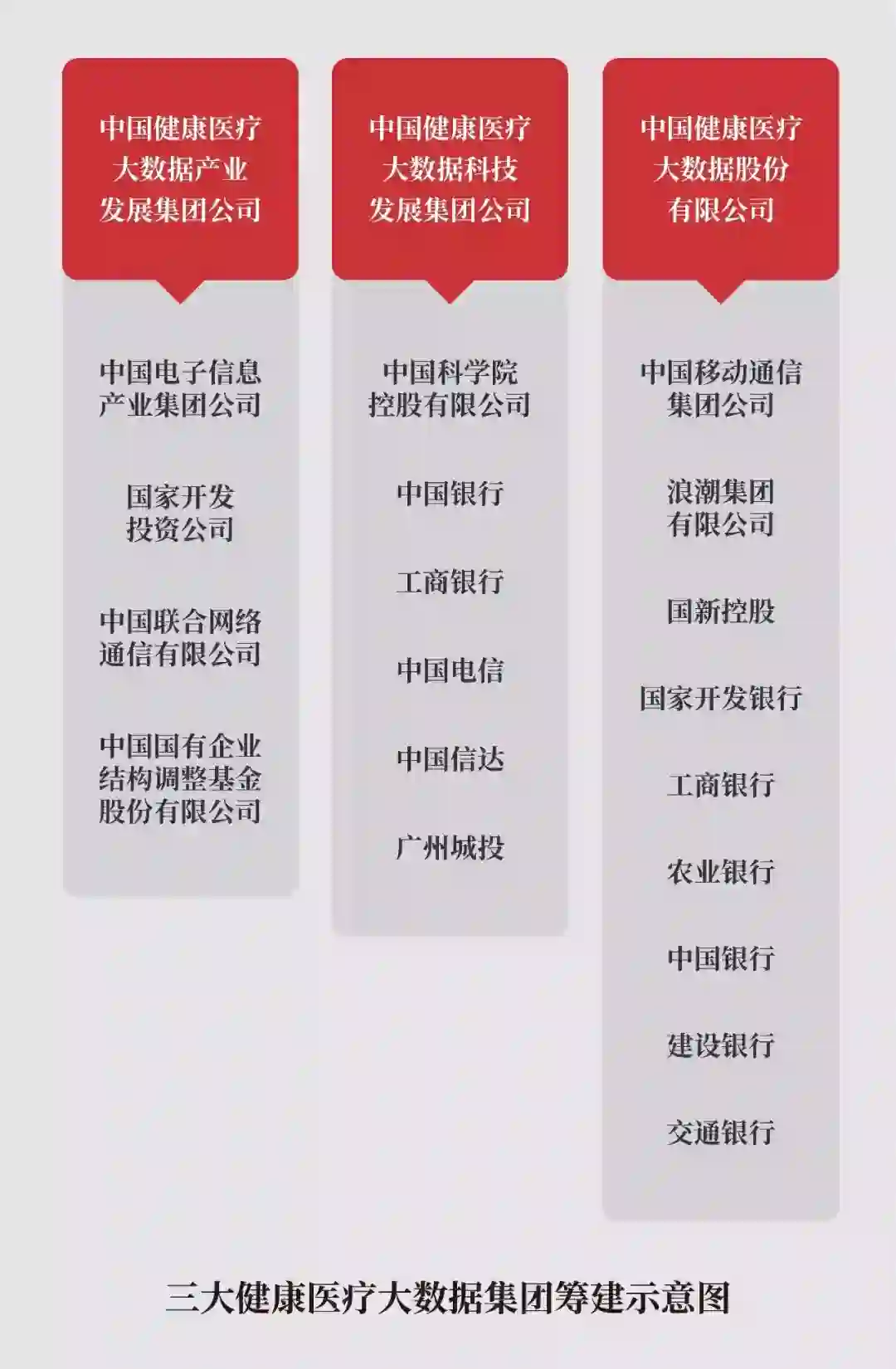 2016年6月,《关于促进和规范健康医疗大数据应用发展的指导意见》印发,将健康医疗大数据应用发展纳入国家大数据战略布局,由中国电子、中移动、中科院分别牵头,成立三大健康医疗大数据集团。