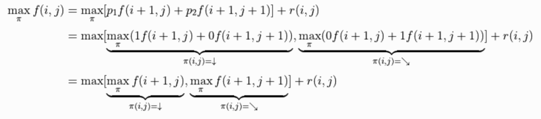 (策略改进)对第 i 层中每个坐标 (i, j),取未来期望较大的动作作为 的取值