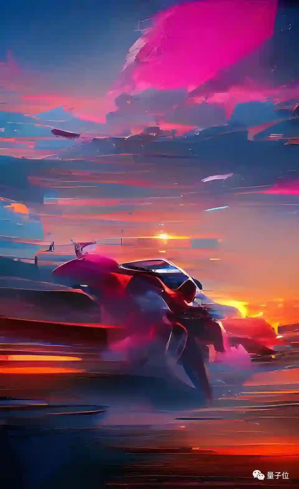 比如输入落日飞车四个字,在AI的“想象”中会是这样: