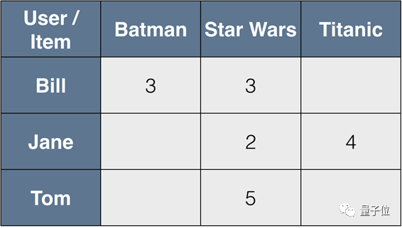 例如我们想比较Bill和Jane,已知比尔没有看泰坦尼克号,Jane没看过蝙蝠侠,于是,我们只能通过星战来衡量他们的相似度了。谁没看过星球大战呢是吧?