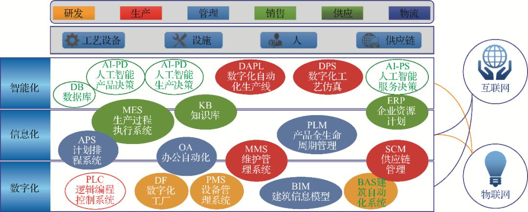 面对制造企业现状及上述需解决的问题,东风设计院认为,达成最终智能制造的智能工厂的体系架构应包含以下几项核心技术。