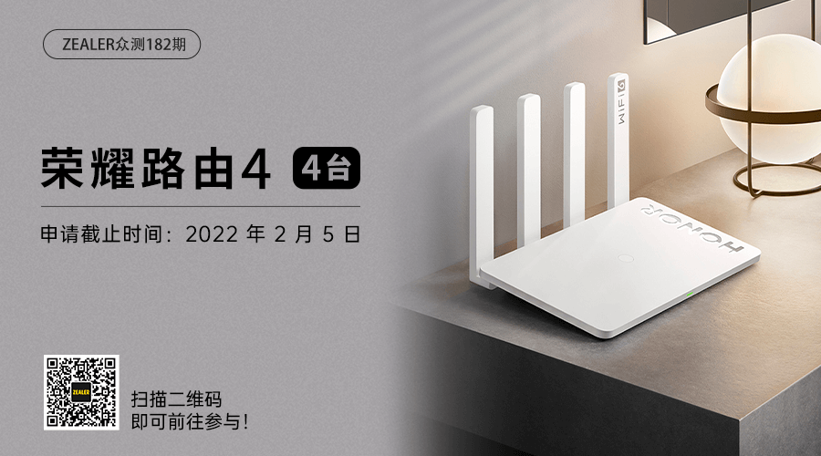 过年王者要快速上位?别让网速拖后腿!本期 ZEALER 众测新品——荣耀路由 4。WiFi6 千兆路由,3000Mbps 无线速率,让你畅享游戏和 8K 大片;高通 CPU+NPU 解决方案,多连不卡更稳定;四根高增益天线,超广覆盖范围,穿墙更是小 case!扫上方二维码或戳左下角「阅读原文」即可申请免费试用。