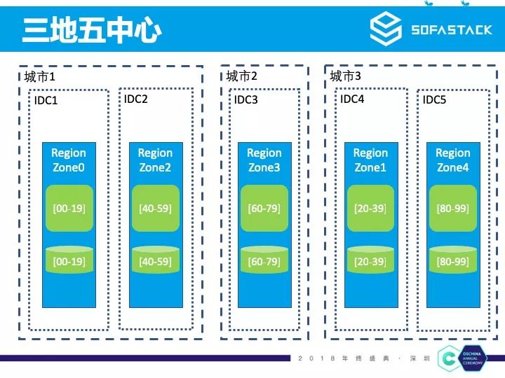 从两地三中心到容灾能力更强大的三地五中心,我们只需要先进行第三个城市的机房建设,然后将部分 RegionZone 部署到第三个城市,最后再完成数据迁移和引流即可。