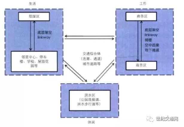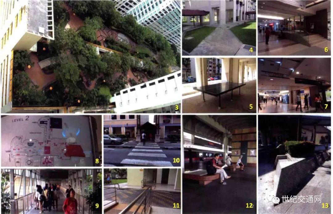 新加坡组屋是由建屋发展局承担建设的公共房屋,约85%的新加坡人居住在政府组屋。新加坡组屋以组团形式集中建设,并按步行尺度设置邻里中心,组屋沿街不设商业,而是将公众的日常生活需求通过步行集中组织在邻里中心。公众日常生活出行通过独立的步行系统由组屋住宅到邻里中心,工作出行则通过独立的步行系统由组屋住宅到公交停靠站、轨道交通车站或多层停车楼。组屋住宅区的步行交通以组屋电梯口、邻里中心、停车楼和公交站等为点,以组展底层架空区和步行连廊为线,形成组屋区优质、系统、独立的步行系统。