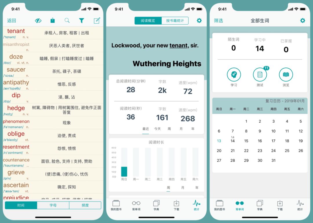 好不容易啃完生词,等到考试又像在看天书。为了避免这种情况,蒙哥阅读器还贴心内置了复习功能。你可以通过星标、笔记等记录学习历程,并在稍后查看阅读统计、生词本等信息。