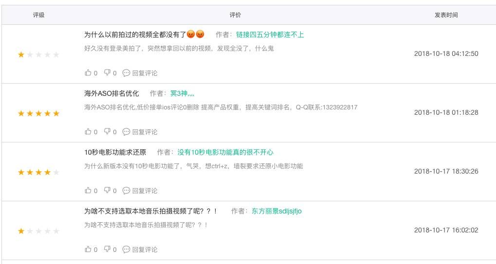 随机选取最新评论,可以看到内容较差,不是负面评价就是广告,这点需要官方进行把控。