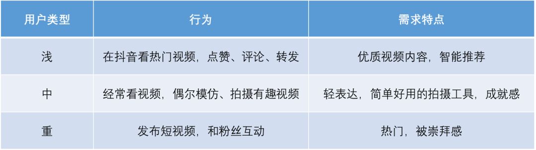 浅层用户:一个刚下班在坐地铁的用户,觉得很无聊,打开抖音,看到智能推荐的视频很有意思,点赞评论,看了一路直到下车。