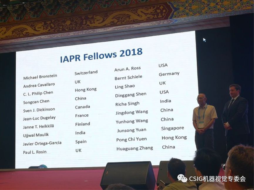 IAPR Fellow于1994年设立,授予模式识别领域的杰出科研工作者及活动组织者。根据IAPR组织条例,每两年提名IAPR Fellow一次,当选的人数不得超过IAPR会员总人数的0.25%。2018年全球共有20人当选。
