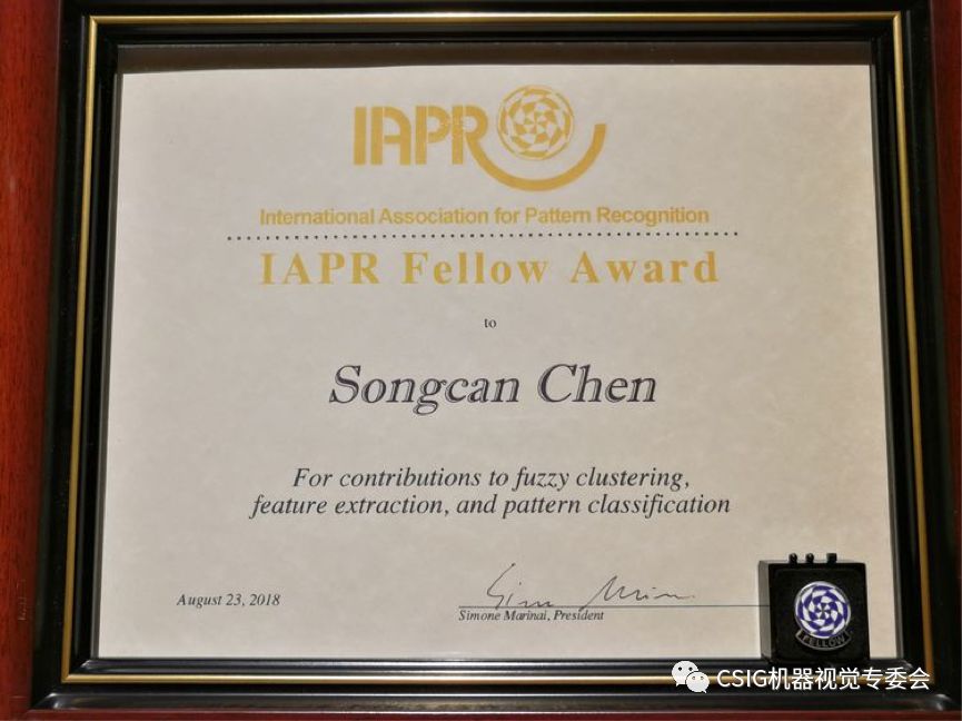 2018年8月23日,在北京召开的第24届国际模式识别大会的晚宴上公布了新的IAPR Fellow名单,中国图象图形学学会机器视觉专委会委员、南京航空航天大学教授陈松灿因模糊聚类、特征提取、模式分类方面的贡献当选IAPR Fellow!