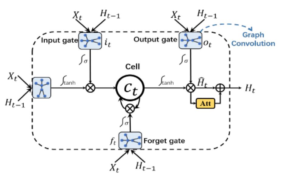 探究不同的图处理方式,LSTM具有很强的时序特征获取能力,将其于图结构结合起来,可以实现对时空特征的获取。