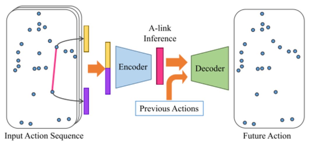 如图(c),Action-Link实际上就是每个关节和其他所有关节的连接,通过一个编码-解码器来学习这些连接的权重,进而发掘关节之间的潜在联系,如下图: