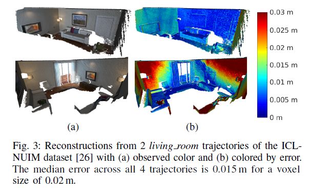 本文作者创建了一个可以解决地图一致性问题同时达到可量化标准的新型3D稠密地图系统,该系统以能代表环境的一系列重叠TSDF地图子卷为核心,它们用基于特征提取的相机跟踪和光束平差法进行定位。