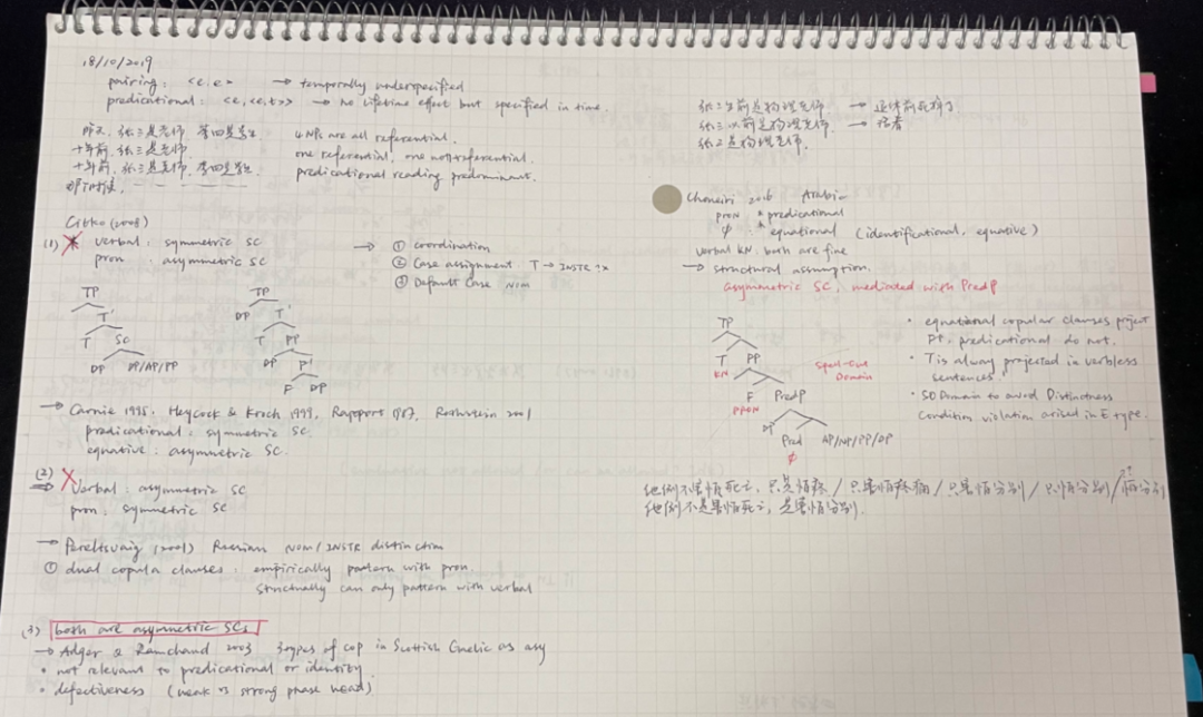 我通常习惯边读边写,摘录一些重要的概念、材料加强记忆,同时绘制一些导图或流程图帮助把握文章脉络。在文章读完之后,我会再将手写的笔记整理加入我的电子笔记系统中留存,手写的大部分内容甚至可以丢弃了(虽然我还是都留着了……)思考问题的时候,大多数情况下我没有明确的先手写再整理电子化的过程,而总是两者同时配合进行,时而在电脑上敲下一些内容,时而在纸上写写画画,二者配合更好地帮助我想清楚问题。