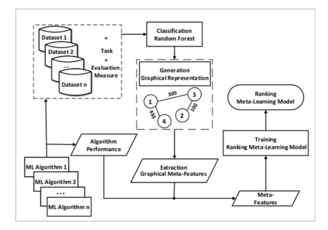 AutoGRD首先将数据集表示为图,并将它的隐式表示提取出来,然后将这个表示用来训练排序元模型,这个模型能够对未见过的数据集准确地推荐性能最佳的算法。