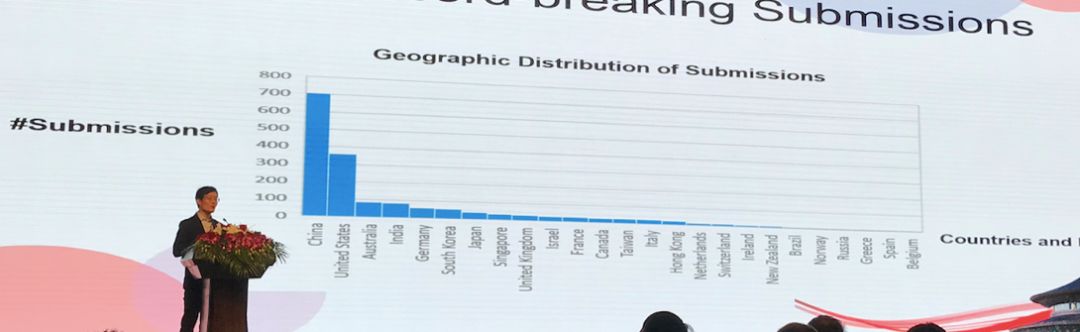 考虑论文投稿的地理分布,可以看出绝大部分论文是来自中国,占全部论文的四成;其次则来自美国,约有300多篇。