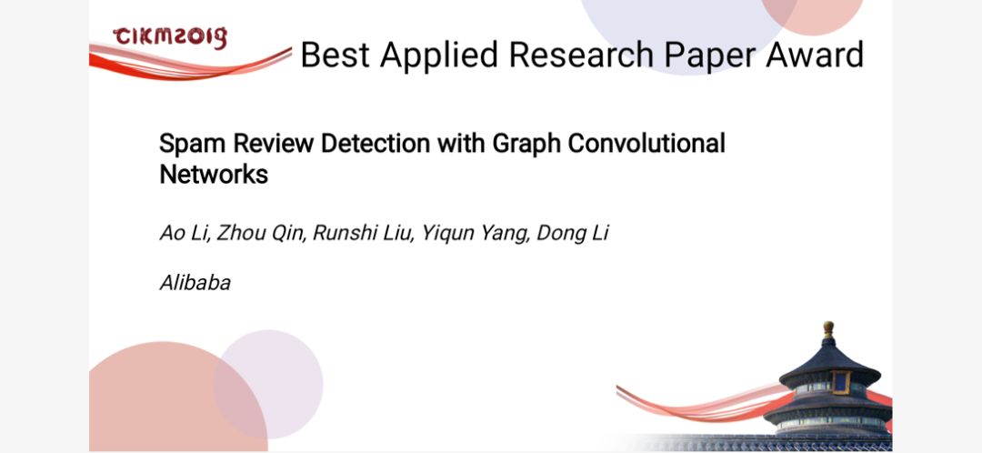 该奖项的获得者全部来自阿里巴巴安全团队,研究的内容是关于闲鱼上垃圾评论检测过滤,这也是应用向唯一的最佳论文(不像research track还有runner-up奖)。