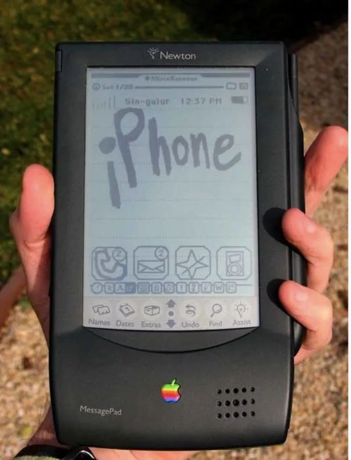 Newton于1993年问世,1998年破产,是第一台商用手持计算设备。这是一项巨大的技术成就,但它的定价过高,而且在最常见的应用中效果不够好。就在苹果取消Newton产品线之后不久,竞争对手Palm推出了与Newton几乎完全相同的手持设备,并在21世纪中大获成功,在5年内直接推动了智能手机的发展。