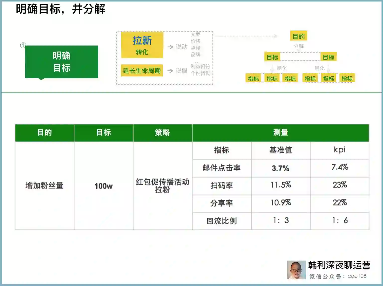 在我书中的运营核心流程与方法中,第一步就是明确目标。我们来讲这一步。