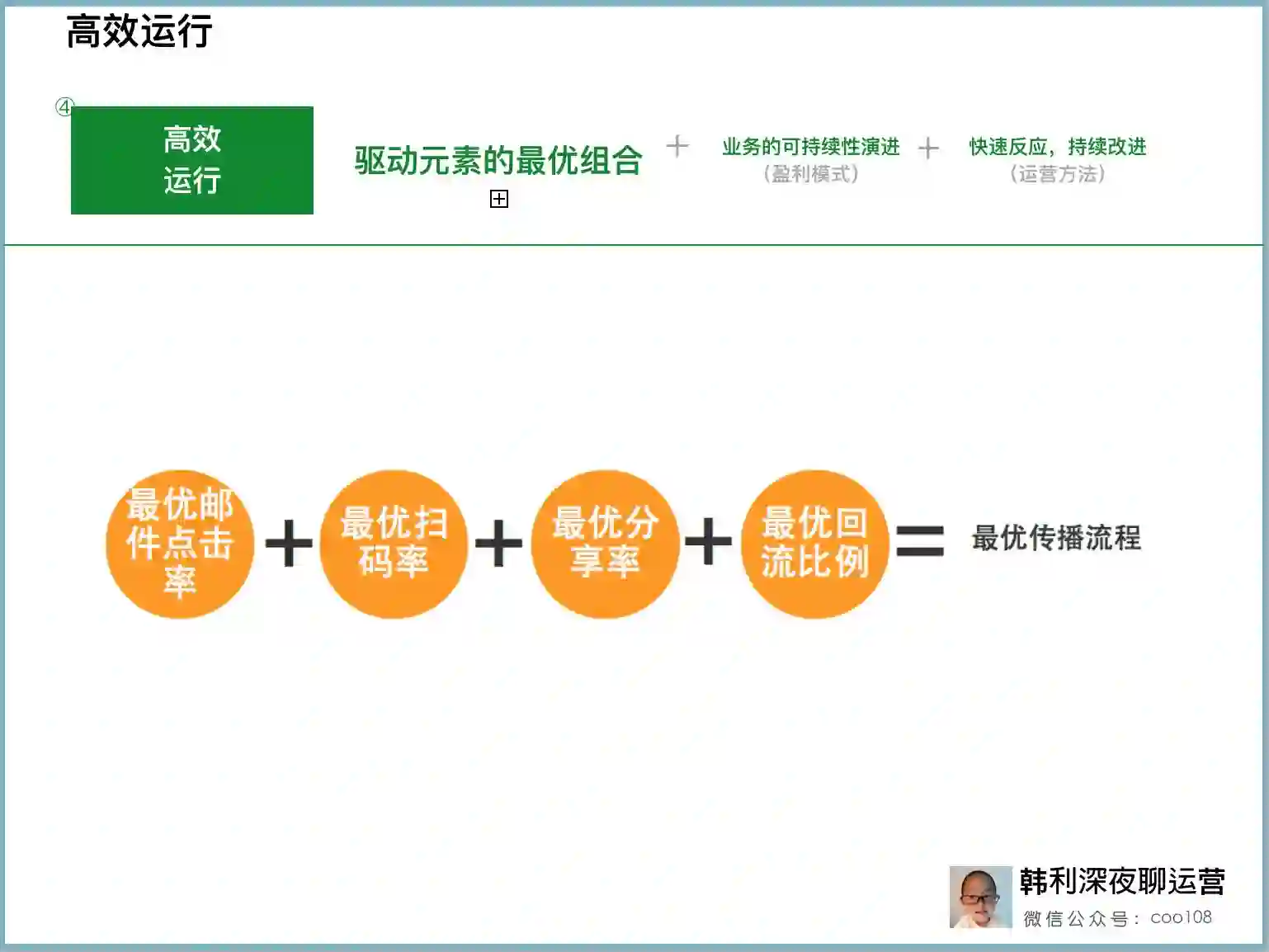所谓的高效运行,这是一种运营技能和策略的体现,运营不是一个苦逼的活,而是提高效率的。