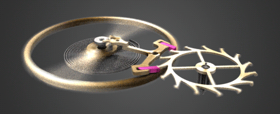 实验中的这个装置可以看作是一个擒纵机构(Escapement)。擒纵机构是机械手表的灵魂,在手表中,它可以将往复的周期性信号转化为单向旋转的周期性信号。