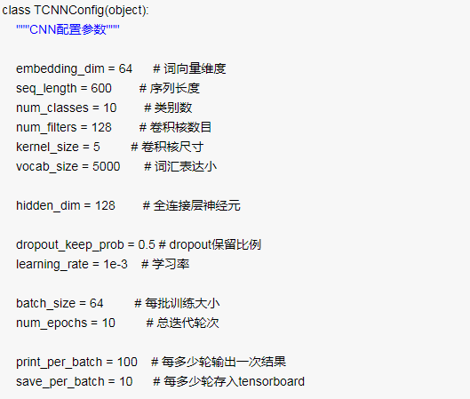 CNN可配置的参数如下所示,在cnn_model.py中。