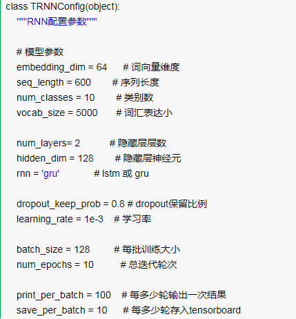RNN可配置的参数如下所示,在rnn_model.py中。