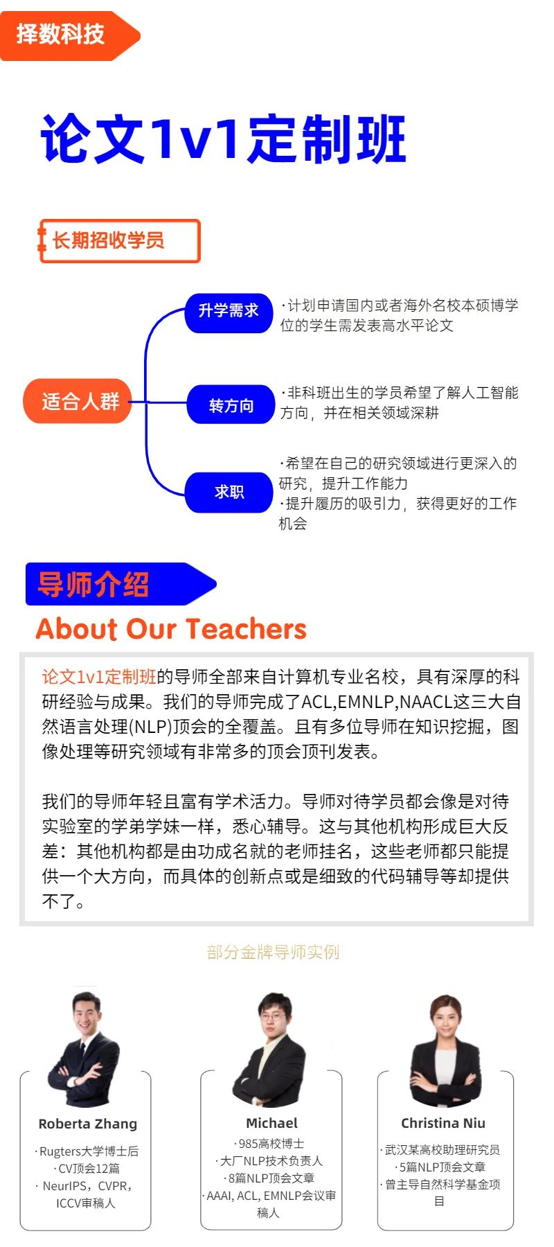 除了Michael老师,择数AI也向我提供了非常强有力的支持。择数AI的其他大牛导师们也对我们的初稿提出了很多宝贵意见。最终我们将论文投稿到了EMNLP 2021。