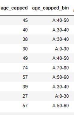 那么我们可以采用分桶法,处理后每个值被赋予它所应在的一个属性,这样一来数值特征便被转化为分类特征。以下是分桶后的输出样例。