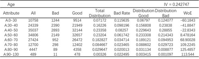 算完这些之后,评分卡开发就完成了,图7中列出了评分卡的部分结果。