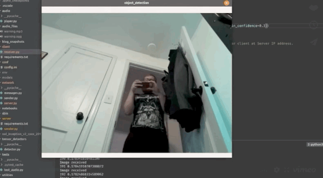 一旦检测到有人在视频流中,就可以使用ZeroMQ向Raspberry发送信号,播放一些非常响亮,令人讨厌的音频,以警告恐吓人们。