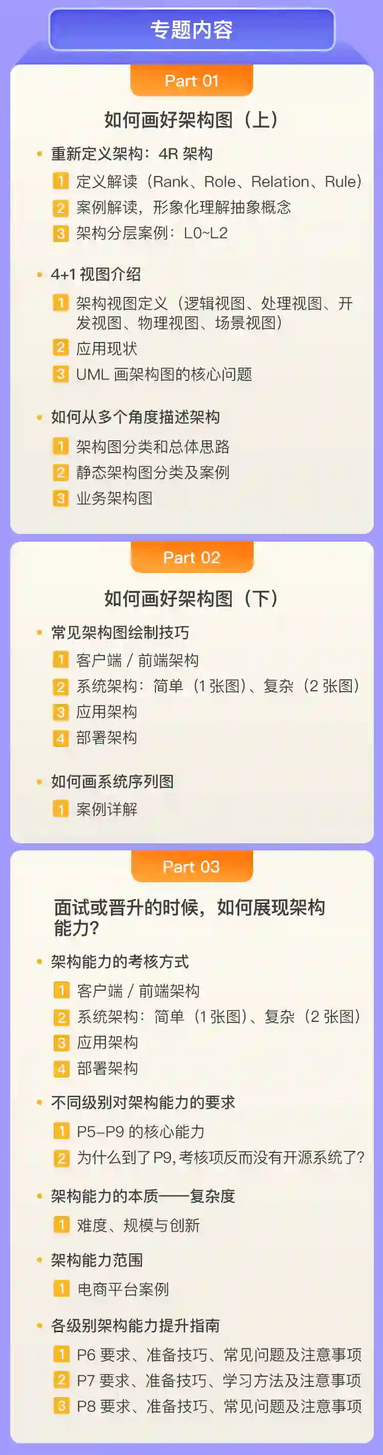 最后一天的拓展内容会结合案例给大家深入讲解如何在面试或者晋升时候巧妙地展现自己的架构能力。