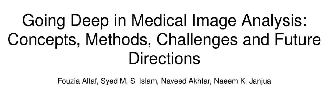 近日arXiv新上一篇论文《Going Deep in Medical Image Analysis: Concepts, Methods, Challenges and Future Directions》,来自澳大利亚埃迪斯科文大学的研究人员综述了深度学习在医学图像分析领域应用的概念、最近出现的常用方法、数据集、面临挑战和可能的未来方向。