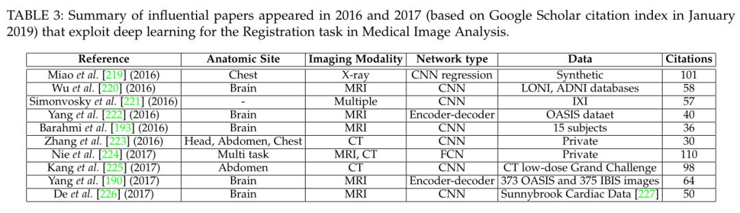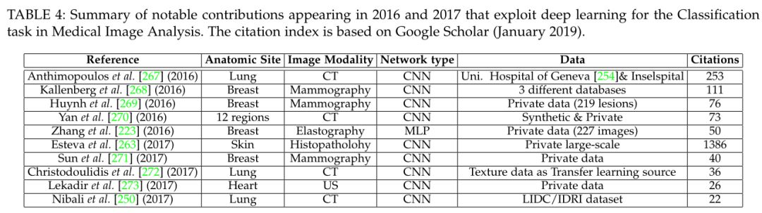 作者将2016、2017年新出的文献按照谷歌学术的索引排序,列出了每个技术领域具有影响力的文章。(因2018年刚过,数据还不完整,所以不包含2018年的论文)